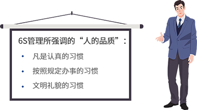6S的前身为5S,而5S起源于日本,其包括“整理(Seiri)、整顿(Seiton)、清扫(Seiso)、清洁(Seikeetsu)、素养(Shitsuke)。”五项要素,因其首字母均为“S”故简称5S。5S是企业进行现场管理与改善的一种有效工具,其特点是立足现场,从身边的细节着手,结合现场实际情况,按照精益管理(如:IE、目视化及标准化等)的要求对现场、现物进行规范改善,以达到营造一目了然的工作环境,进而实现培养员工良好的工作习惯的目的。5S是日式企业独特的一种管理方法,其最终目的是提升人的品质。