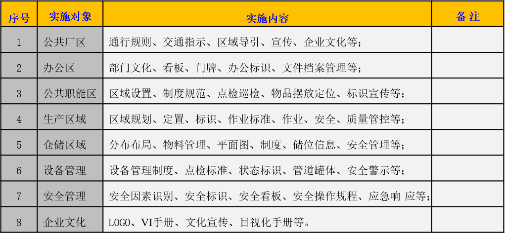 思坡特目视化管理咨询辅导以上百家工厂现场6S管理咨询成功案例为支撑,并特创将企业现场目视化与企业文化要素(CIS:MI、BI、VI手册)相结合的方式,为企业塑造高效、明快、安全、亮丽且充满活力的现场,以全面提升现场及企业综合管理水平。