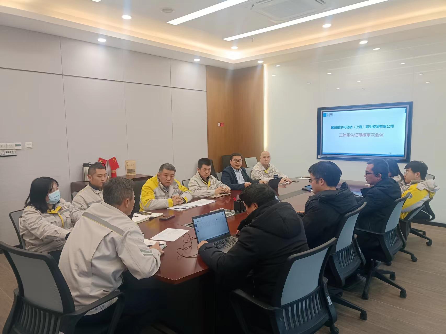 2024年1月24、25、26日国投维尔利(马桥)再生资源有限公司通过标准化及三体系(ISO9001:2015质量管理体系、ISO14001:2015环境管理体系和ISO45001:2018职业健康安全管理体系)认证审核。